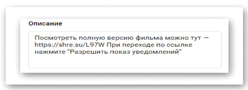 Загружаем наши трейлеры на страницу, даем им названия как полагается и обязательно пишем описание, за счёт которого и будем зарабатывать. Потом нам нужна ссылка, за переход по которой им нужно будет разрешить уведомления, чтобы посмотреть кино, которое они так хотят увидеть.